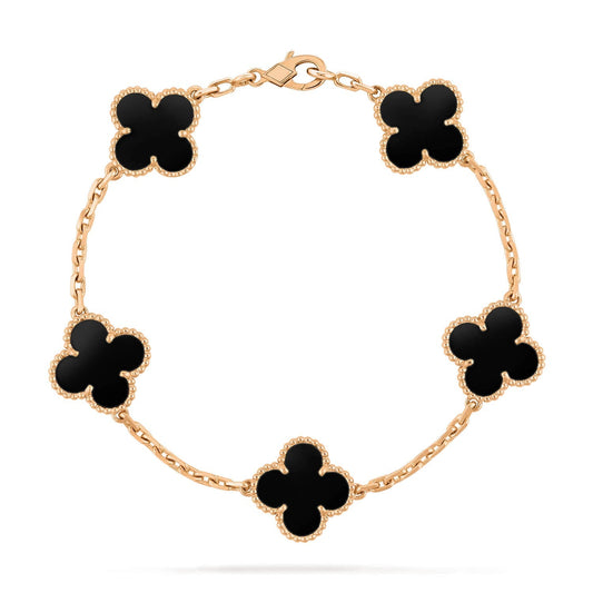 [AuraEcho]CLOVER 5 MOTIFS BLACK ONYX BRACELET